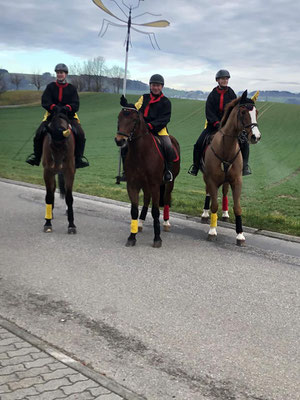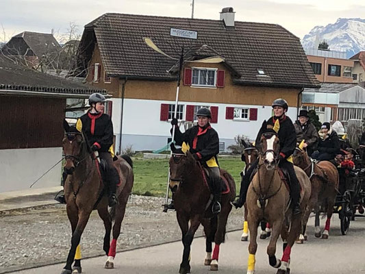 Alberswil, Ettiswil und Kottwil. Drei VorreiterInnen führten den Tross an. Dabei durfte ich mit Casim die "Mugg" durch die Dörfer tragen. Dahinter folgten zwei Landauer-Gespanne mit Zunftmeister,